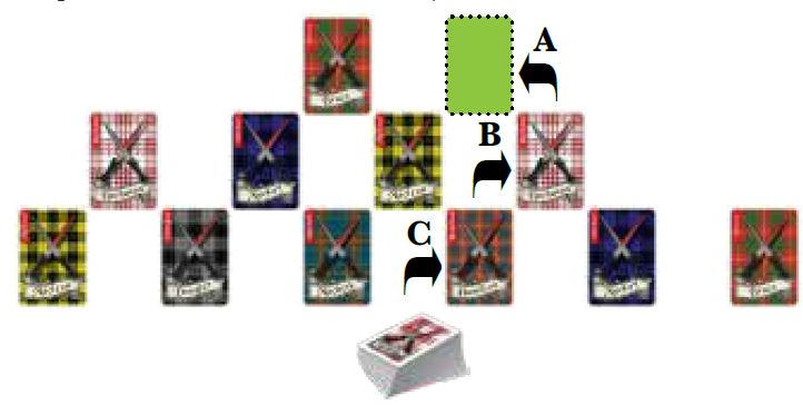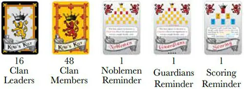 Clans ascend the pyramid of cards, rising from the bottom three rows of commoners, through the ranks of noblemen and guardians, until one finally gains the crown and is named King of Scotland.