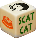 Roll the dice and match the two pictures on the dice to one or more squares on your bingo board. Then mark that square with a mouse. Roll "Scat Cat" and you lose a mouse.