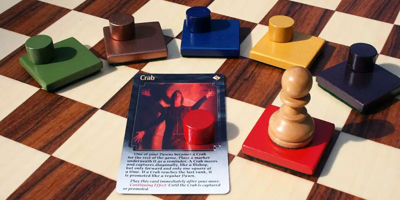 Each player has a deck of cards, each modifying the traditional rules of the game in a different way. Every move is a surprise! In Knightmare Chess, victory is never certain until the last move.