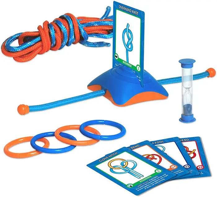 The knot challenges start easy to help you build confidence, the game rules make the game exciting to play, and we provide variations on the rules so that novices can compete against experts.