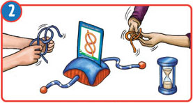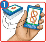 All players race to tie the knot pictured on the challenge card. Teammates can verbally help one another to solve a challenge, but they may not manipulate one another's ropes.