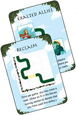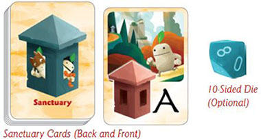 The oldest player is the Caller. This player shuffles the path cards and sanctuary cards separately and places them in two facedown decks on the table.