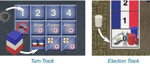 Place the blue, white, and red Election Markers on the 0-space of the Election Track.