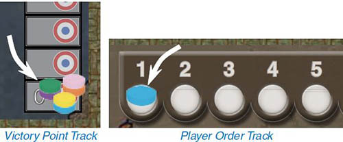 Each player places one Control Token on the 0-space of the Victory Point Track to record total accrued Victory Points (VPs).