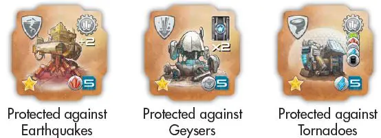 When a player is hit by a cataclysm on a hexagon, if this player has constructed a building providing protective technology effective against this particular type of cataclysm, they may use it to protect the buildings they control.
