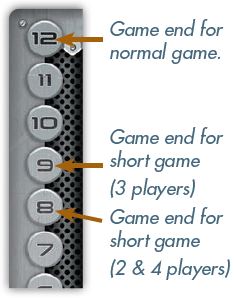 Again, we strongly suggest that you play shorter games at first, such as 8 turns for a 2- or 4-player game, and 9 turns for a 3-player game.