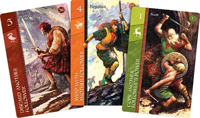 When activated, Clan Bruce cards are considered to be part of any Clan you wish at the end of the round. This helps strengthen armies and double their value.