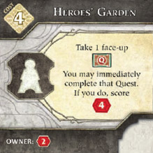 Action: Take 1 face-up Quest card from Cliffwatch Inn. You may immediately complete that Quest. If you do, you score 4 bonus VP in addition to the Quest reward. (You do not score the bonus VP if you complete the Quest later on).