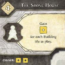 The 24 Building tiles represent advanced Buildings that players can purchase. Up to 3 Building tiles are face-up and available for purchase at Builder's Hall at any time.