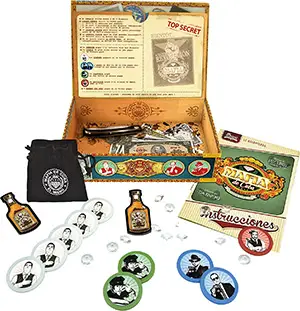 - 10 character tokens: 5 Loyal Henchmen, 2 Agents FBI, and CIA), 2 Drivers. 1 Cleaner.