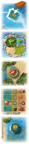On your turn, you place your own bowl on any unoccupied ritual site of the archipelago. The symbols on the twelve landings show you what action(s) a player is allowed to carry out when the boat reaches that bowl.