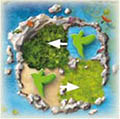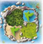 There are two double-landscape spaces on the gameboard, each of them consisting of two landscapes. If you build a hut on such a space, the landscape card you pay with has to correspond to one of the landscapes (of the space in question). This type of landscape must be occupied by one of the birds on the oracle rock.