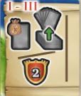 - one of their markers onto space 8 of the doubloon income track, and the last of their markers onto space 0 of the victory point income track.