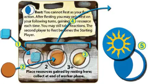 During the Worker Phase, players take turns in clockwise order, beginning with the player with the Active Player Marker, who turns it sun face up at the beginning of the phase.