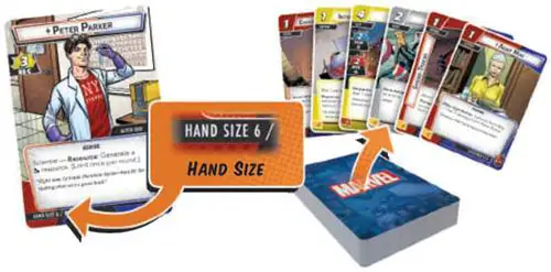 Peter Parker draws 6 cards. Carol Danvers draws 6 cards.