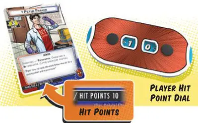 Set Hit Points. Each player sets their hit point dial equal to the starting hit points of their character, found at the bottom of their identity card.