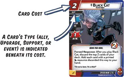 - If the card is an ally, upgrade, or support, it enters play ready in that player's play area. If the card is an event, resolve its effects and place it in its owner's discard pile.