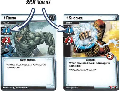 When a card or game rule instructs an enemy or villain to scheme, a number of threat equal to the SCH value of that enemy is placed on the main scheme.