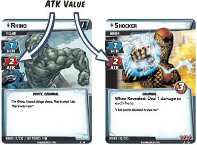 If the player is in hero form, the villain (and each minion engaged with that player) attacks. To resolve this activation, perform the following steps:
