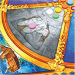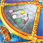At the center of the board is a version of the famous Medici family crest. Place one of each of the five commodity scoring markers on each of the five red "balls" of the crest