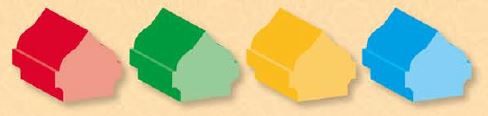 Each player has four rooftops in their color and can claim four pal- aces during the game, one palace in each of the four colors.