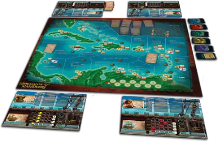 Each player gets a Player Board. The Player Board is used to keep track of Cards, Gold, Cargo, and the condition of your ship.