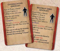 Some Glory Cards (and a small number of missions and rumors) give you the option of hiring Specialists. Specialists are masters of their trade and enhance your Captain's ability to stay at the top of his game.