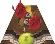 Example: Matt chooses the 3rd Anthill tile in the line. In order to take it, he must place one Soldier from his army on the 1st tile of the line and another one on the 2nd tile of the line.