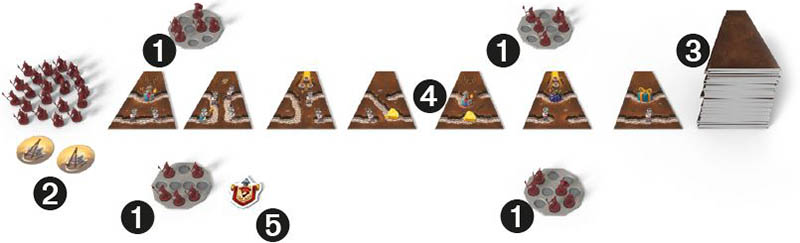 1 Each player takes a Foundation tile and places 5 Soldiers on it. The soldiers form that player's army.