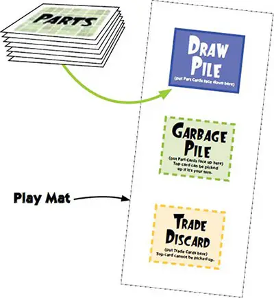 The dealer puts the rest of the Parts cards face down over the Draw Pile on the Game Mat.