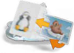 Take the card and set it upright somewhere on the ice floe. The big penguin always has to lean against something, e.g., the iceberg or other penguins, big or small.