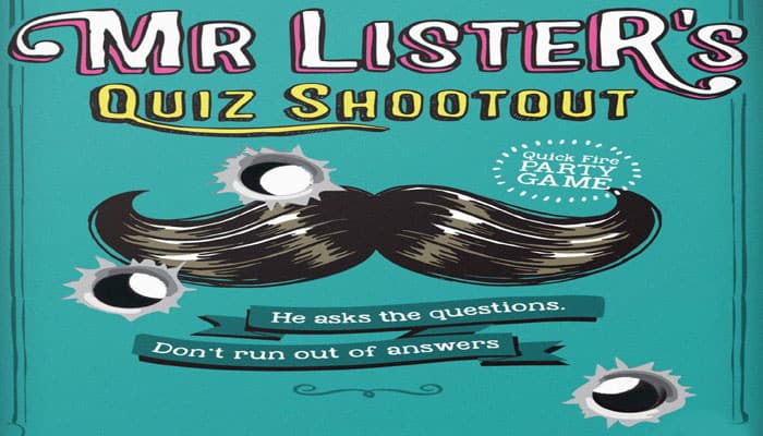 Gather two or more friends in your saloon. One person plays as Mr Lister. They grab the mustache, pencil, scorecard and read the questions.