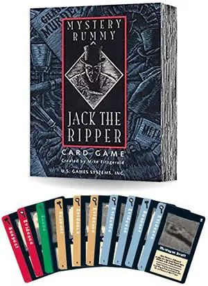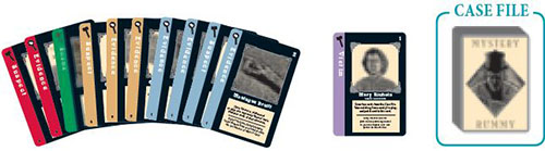 There are two main types of cards used in this game: "Evidence cards" and "Gavel cards". Most of the time you will be trying to catch "Jack the Ripper" by making melds (three or more of a kind) of Evidence cards. The Gavel cards will help players trying to catch Jack as well as the player who may be trying to escape. They provide a strong strategic element to the game not found in traditional rummy.