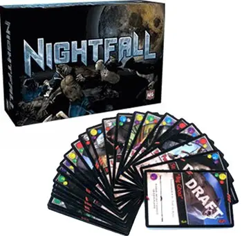 Each player shuffles his starting deck and draws five cards to form his hand. Determine a first player by any mutually agreeable method. You are now ready for Nightfall!