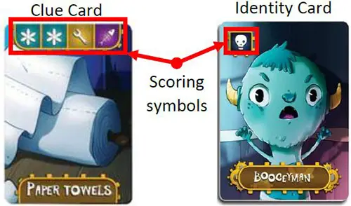 At the end of the game, you'll gain points for all cards played to your location and points for each symbol displayed on cards in the house. You'll also gain points for discovering the identity of other players before the end of the game.