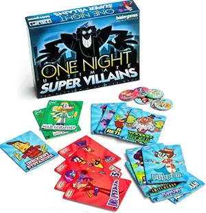 In One Night Ultimate Supervillains players take on the roles of heroes or villains, each with amazing superpowers.