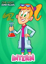 If no player is a Mad Scientist, the Intern is responsible for his terrible experiments. She wins exactly like the Mad Scientist would win if he were in the game.