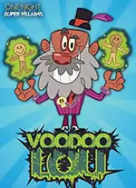 Voodoo Lou is on the hero team. If the Voodoo Lou player switched away his card to the center, he is on the team of the new card.