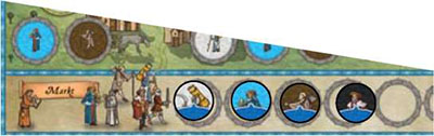 Take a Knight Tile from the game board and put it into your Followers Bag. Then advance one space on the Knights Track. The Knights Track indicates how many Followers you may draw from your bag and place on your Market in Phase 3.