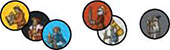 Sort the neutral Character Tiles (without the marking in player color) by profession and place them on the appropriate buildings on the game board.