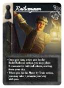 Once per turn, when you do the Build Railroad action, you may place two consecutive railroad tokens starting from your current city.