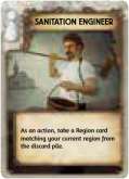 As an action, discard 1, 2, or 3 Region cards of the color matching your current region to place population cubes there equal to the number of cards discarded. Players cannot discard cards to add cubes if it would put the total number of cubes (population plus water) in the region over 3 cubes.