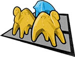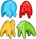 Take four pawns of the same color. Find the gray path space with the circle that matches your color pawns. Place your pawns in the START circle to its right. All players do the same. Players should be sitting so that their START circles are to their right.
