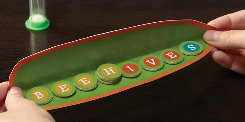 Start the game-choose a player to turn over the 30-second sand timer. All players race to build a word using their letter peas.