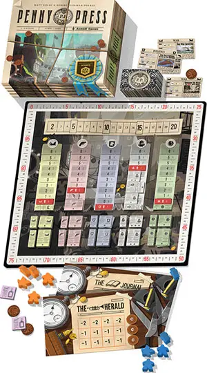Set during the tumultuous 'yellow journalism' years at the end of the 19th century, Penny Press has players taking on the roles of newspaper barons such as Pulitzer and Hearst as they strive to become the dominant paper in old New York City.