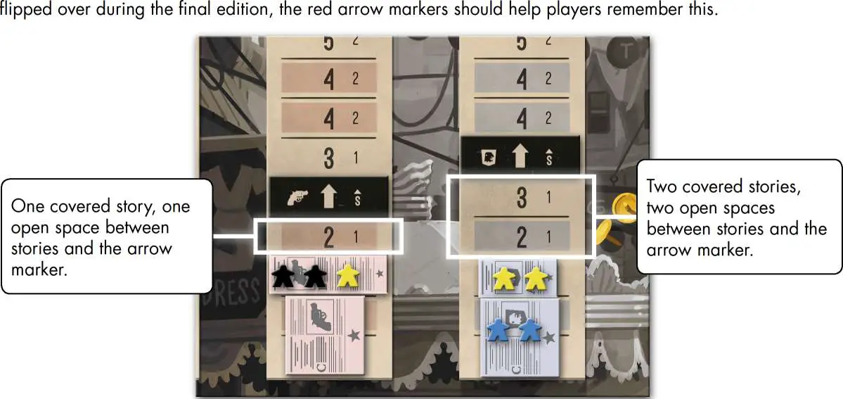 Exception: During the final edition phase of the game, do NOT move the arrow markers! Since they are flipped over during the final edition, the red arrow markers should help players remember this.