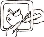 The Picturist uses the marker to sketch the clue on the plastic window just as they would if they were using a pencil and paper.