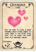 When luring crew members to your crew add up the total amount of charisma points you have to use - including the charm card if you have it. Let's say you have the charm card and a cutlass. You have: 3 charisma points for the captain, 2 for the charm card and 2 for the cutlass for a total of 7 charisma points.