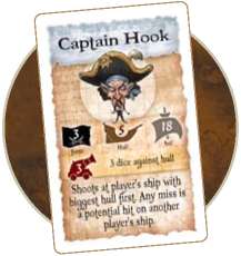 Billy Bones' parrot - "Yo-ho-ho and a bottle of rum"- Always fire all your cannons. Billy Bones' parrot supersedes the effect of a Grapple attack Battle card.