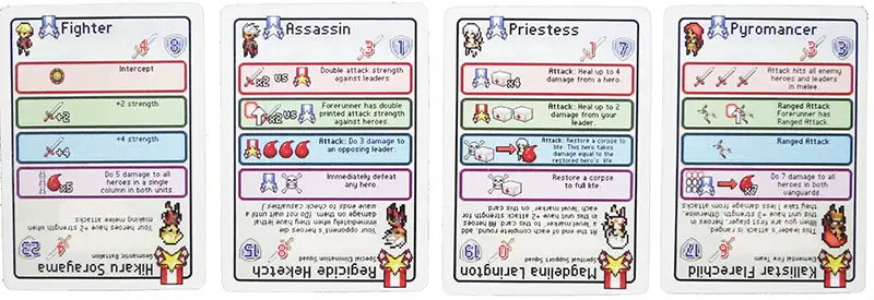 A Hero is played during combat using the recruit action. Heroes have different abilities based on where they stand in relation to their leader.